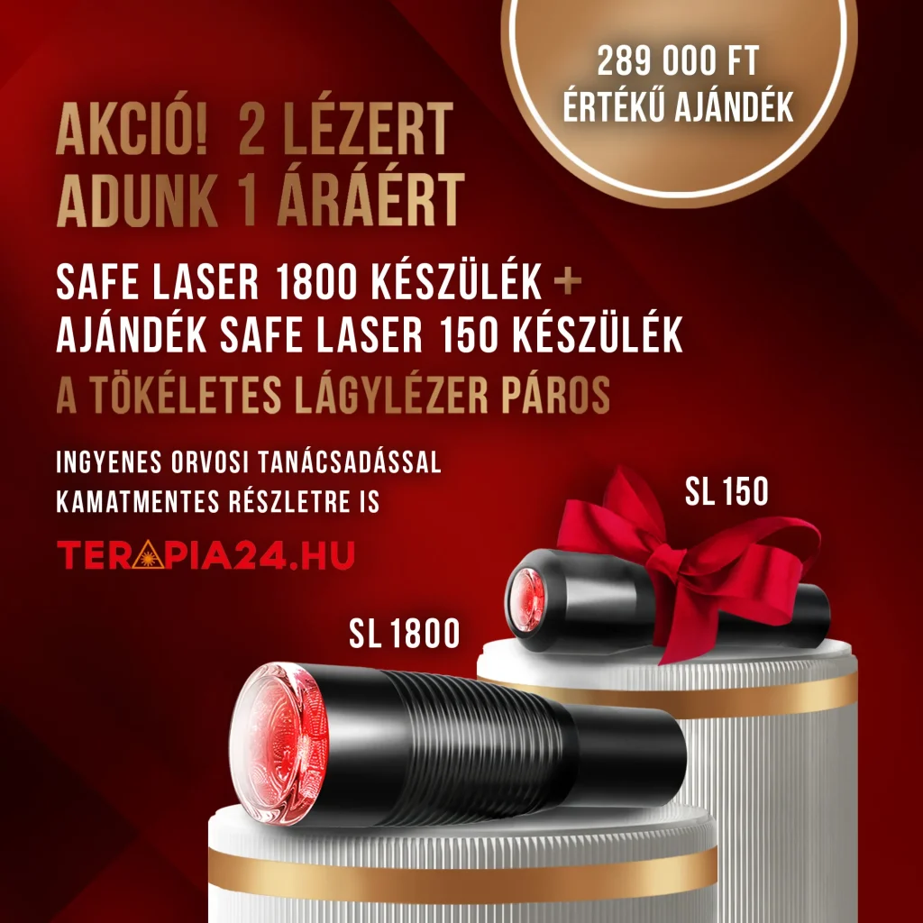 Ne hagyja ki ezt a ritka lehetőséget! A két készülék együtt a lézerterápia teljes spektrumát adja: mélyszöveti kezelésre az SL1800, felszíni panaszokra az SL150. Így Ön és családja minden helyzetben a megfelelő eszközt használhatja – otthon, biztonságosan.